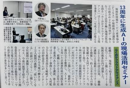 DX・AI活用時代を迎え、プラットフォームとしてのクラウドコンピュータが一層注目されています。 一社)福岡県情報サービス産業協会(教育委員会)では、クラウドおよびAI人材育成にフォーカスし、以下の内容で若手エンジニアを対象に、勉強会を開催しました。 ◆ChatGPTの基礎知識を学び、システム開発業務におけるChatGPTの有用性の提言と、実務における活用方法・事例をご紹介します。◆講師および参加者との意見交換会を実施し、さらなる学びと交流を図ります。 日程:2023年8月25日(金) 13:30~17:30 会場:福岡ソフトウェアセンター 福岡研修室 講師:西部ガス情報システム㈱ システム統括部スペシャリスト 上野 伸一様 受講者数:31名 受講料:5,500円(税込み) 内容: 13:30 主催者あいさつ 13:40 ハンズオン勉強会 ・Chat GPT、ChatGPTプラグイン, Open AI等についての基礎知識 ・プロンプトエンジニアリング ・AIエンジニアリングの倫理、セキュリティ、そして未来 16:30 グループディスカッション・ライトニングトーク 17:30 勉強会終了、講師・参加者との意見交換会 ※飲み物、軽食付き |